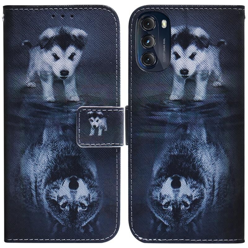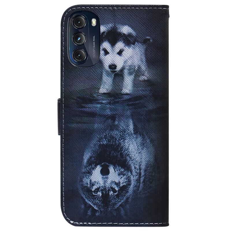 Θήκη τηλεφώνου από δέρμα με έγχρωμο σχέδιο για Motorola Moto G 2022 (Λύκος και Σκύλος)
