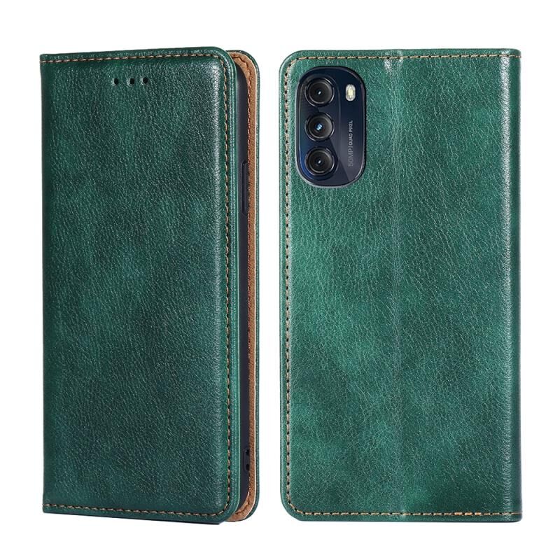 Για Motorola Moto G 2022 Γυαλιστερό λάδι στερεό χρώμα μαγνητική δερμάτινη θήκη τηλεφώνου (πράσινο)