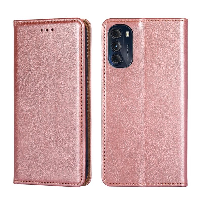 Για Motorola Moto G 2022 Γυαλιστερό λάδι στερεό χρώμα μαγνητική δερμάτινη θήκη τηλεφώνου (ροζ χρυσό)