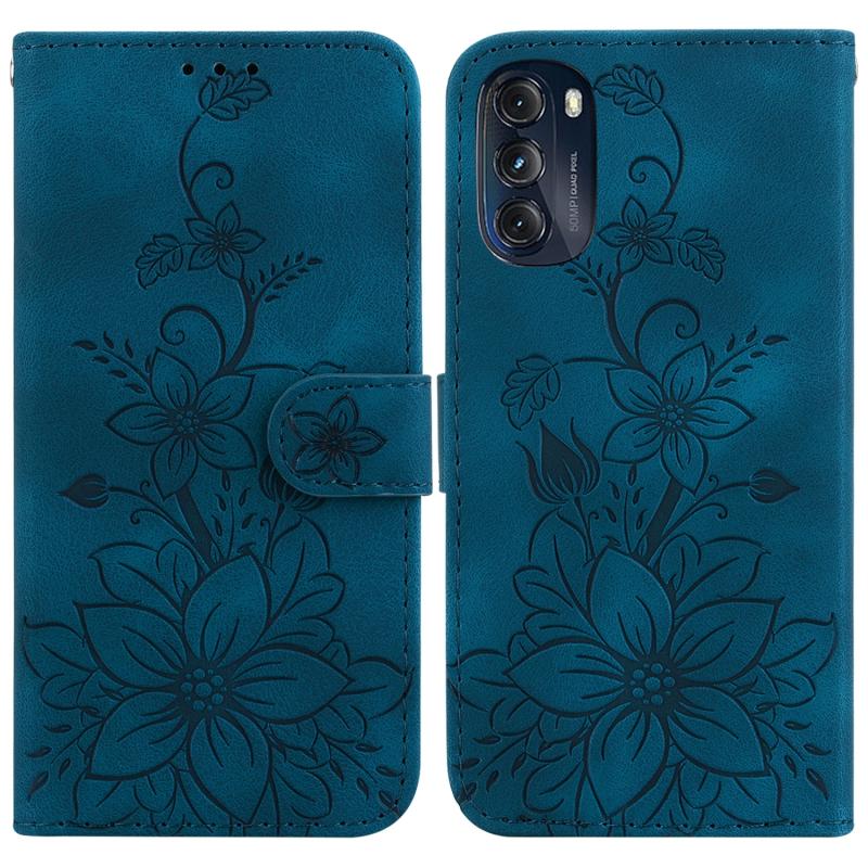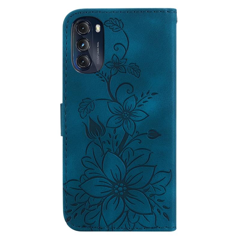 For Motorola Moto G 2022 Lily Embossed Leather Phone Case(Dark Blue)