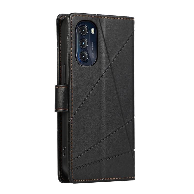 Θήκη τηλεφώνου για Motorola Moto G 2022 από γνήσιο δέρμα PU με ανάγλυφη υφή και λεπτή γραμμή (Μαύρο)