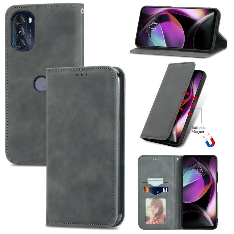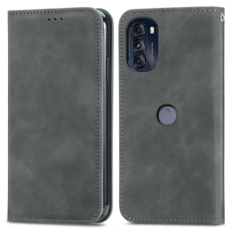Για Motorola Moto G 2022 Retro Skin Feel μαγνητική δερμάτινη θήκη τηλεφώνου (γκρι)