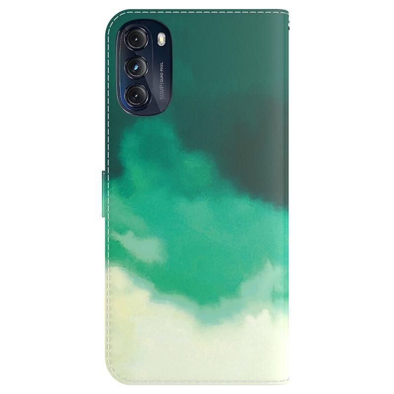 Για Motorola Moto G 2022 Υδατογραφία μοτίβο δερμάτινη θήκη τηλεφώνου (κυανό πράσινο)