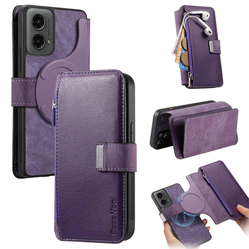 Θήκη για Motorola Moto G 2024 5G CaseNeo MagSafe RFID Αντικλεπτική με Φερμουάρ, Δερμάτινη Θήκη Τηλεφώνου σε Ρετρό Στυλ (Μπλε) (CaseNeo)