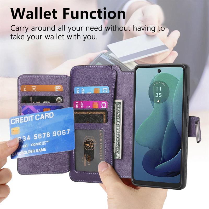 2. Λειτουργία πορτοφολιού με φερμουάρ: Η δερμάτινη θήκη είναι εξοπλισμένη με πορτοφόλι με φερμουάρ και υποδοχές για κάρτες για την τοποθέτηση καρτών και μικρού ποσού μετρητών.