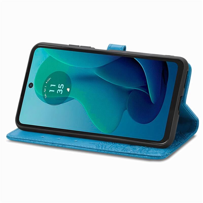Για Motorola Moto G 2024 Mandala λουλούδι ανάγλυφη δερμάτινη θήκη τηλεφώνου (μπλε)