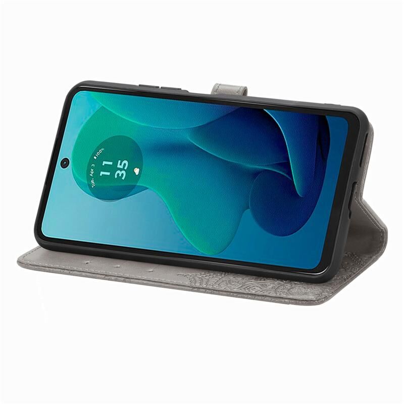 Για Motorola Moto G 2024 Mandala λουλούδι ανάγλυφη δερμάτινη θήκη τηλεφώνου (γκρι)