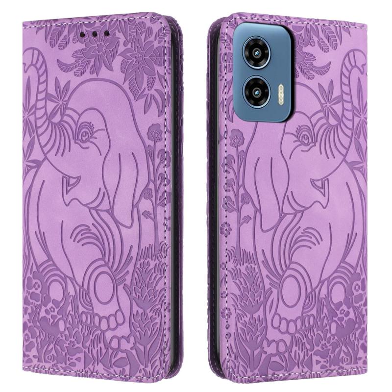 For Motorola Moto G 2024 Retro Elephant Embossed Leather Phone Case(Purple)