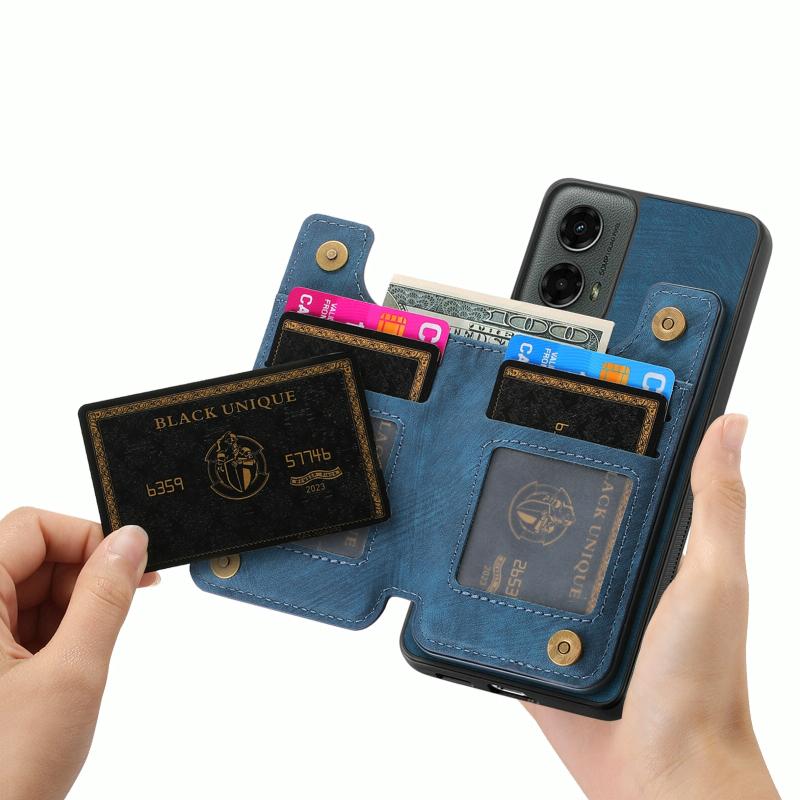 2. Λειτουργία πορτοφολιού: Η δερμάτινη θήκη είναι εξοπλισμένη με υποδοχές για κάρτες και ένα μικρό ποσό μετρητών.