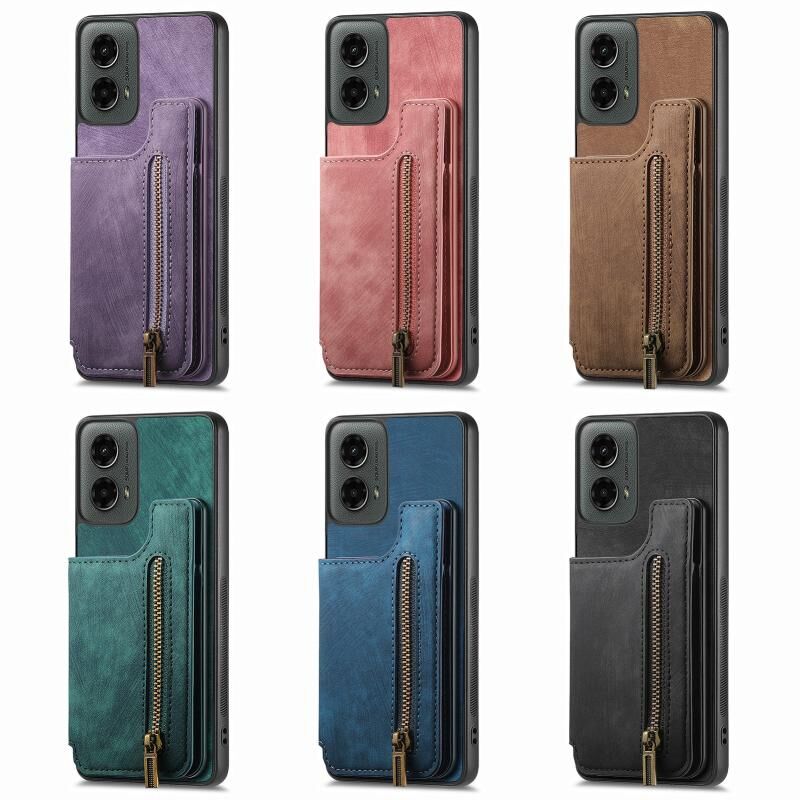 Για Motorola Moto G 2024 Δερμάτινη Θήκη Πορτοφολιού με Φερμουάρ (Μωβ)