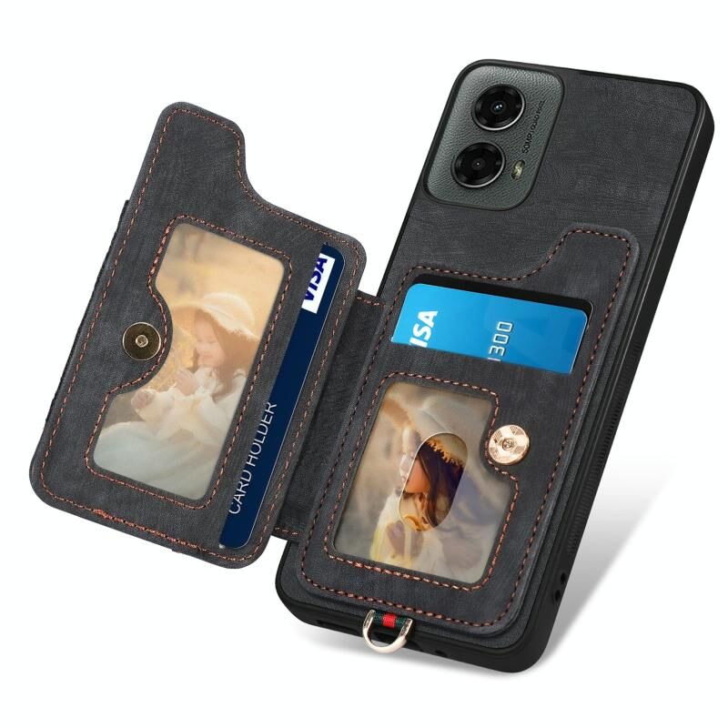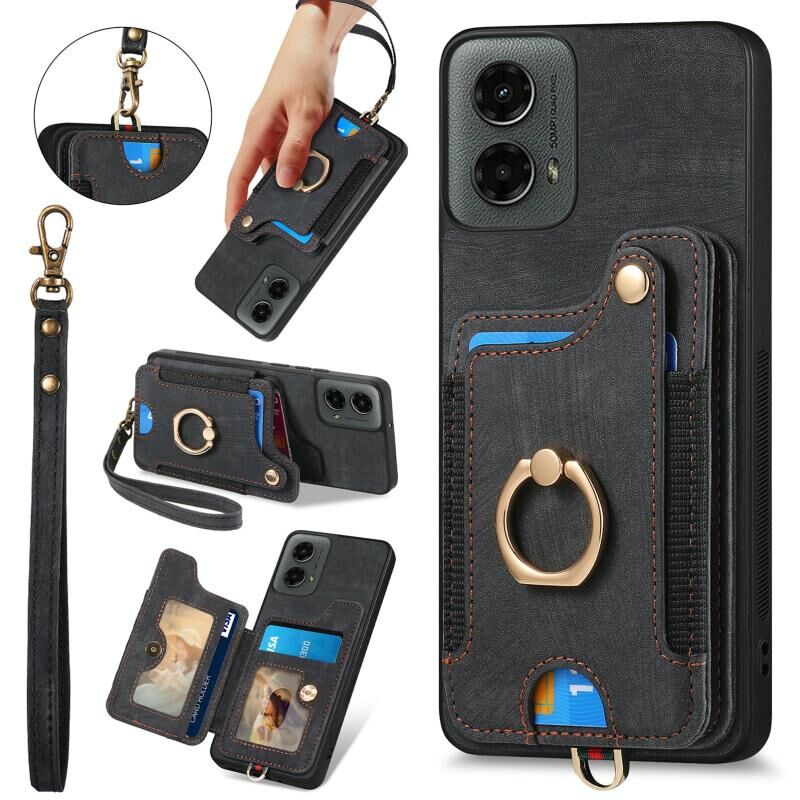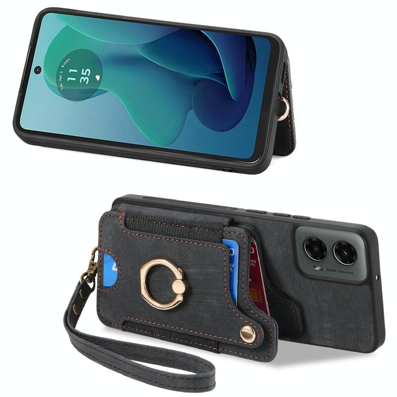 Για Motorola Moto G 2024 Ρετρό δέρμα αίσθηση δαχτυλίδι πολυ-κάρτα RFID πορτοφόλι υπόθεση τηλεφώνου (Μαύρο)