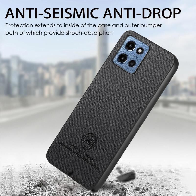 Θήκη κινητού τηλεφώνου από ύφασμα Twill και δέρμα για Motorola Moto G 2025 5G (Μαύρο)