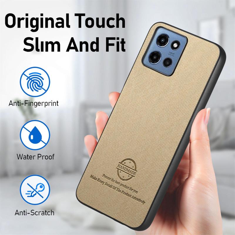 For Motorola Moto G 2025 5G Twill Fabric Leather Skin Back Phone Case(Khaki)