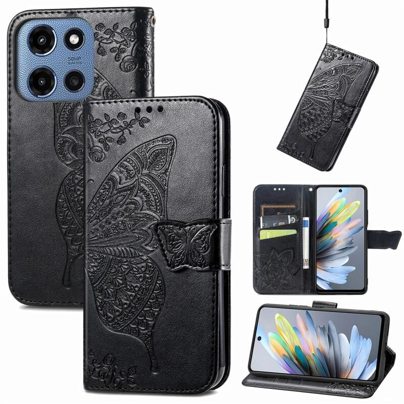 Θήκη κινητού τηλεφώνου από δέρμα με ανάγλυφο σχέδιο πεταλούδας και λουλουδιών για Motorola Moto G 2025 (Μαύρο)