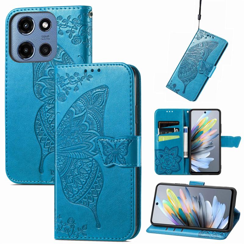 For Motorola Moto G 2025 Butterfly Love Flower Embossed Leather Phone Case(Blue)