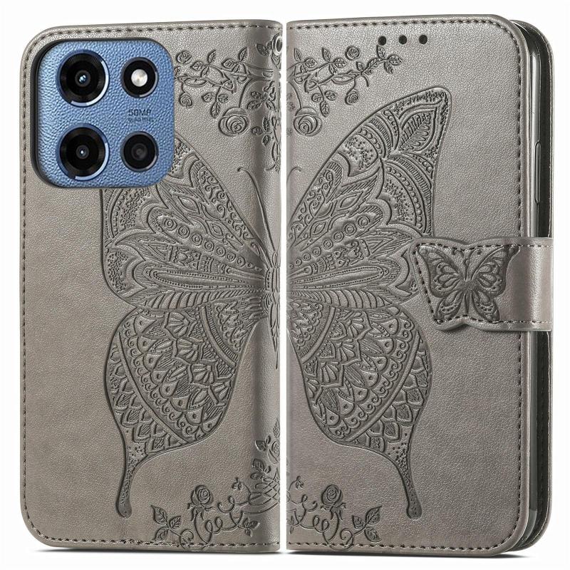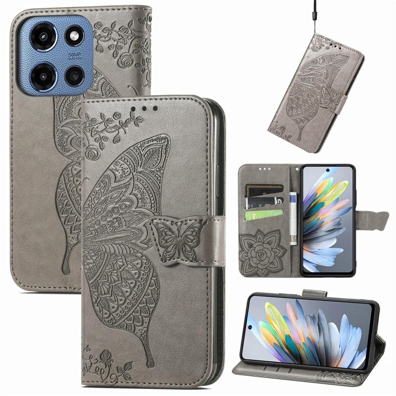 For Motorola Moto G 2025 Butterfly Love Flower Embossed Leather Phone Case(Gray)
