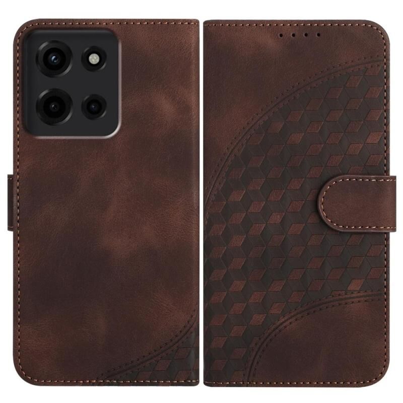 Θήκη δερμάτινη για Motorola Moto G 2025 με ανάγλυφο σχέδιο κεφαλής ελέφαντα και κορδόνι (Καφέ)
