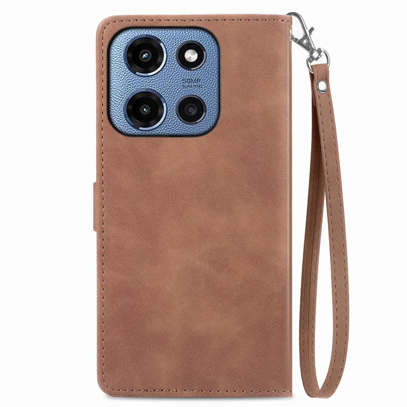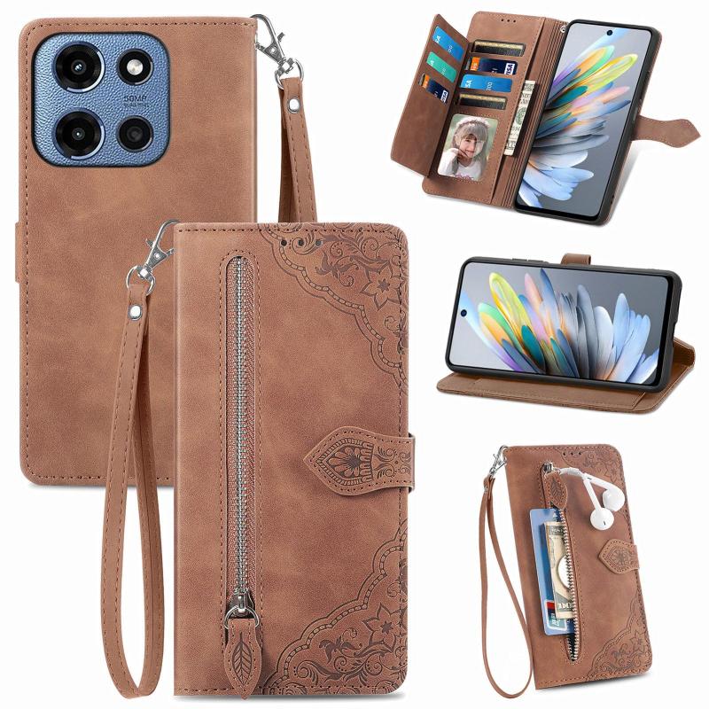 For Motorola Moto G 2025 Embossed Flower Zipper Leather Phone Case(Brown)