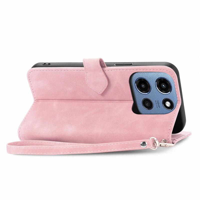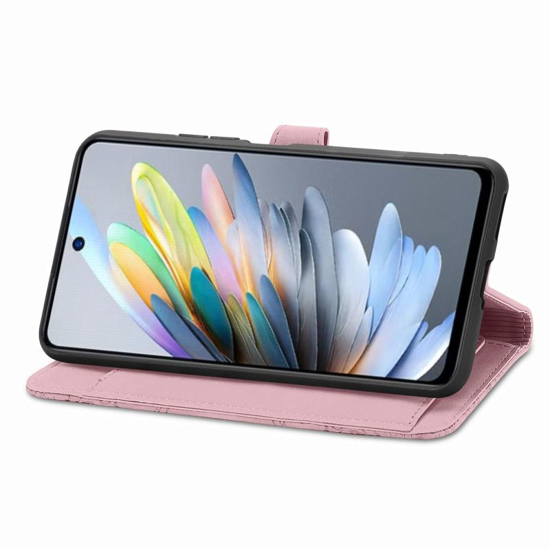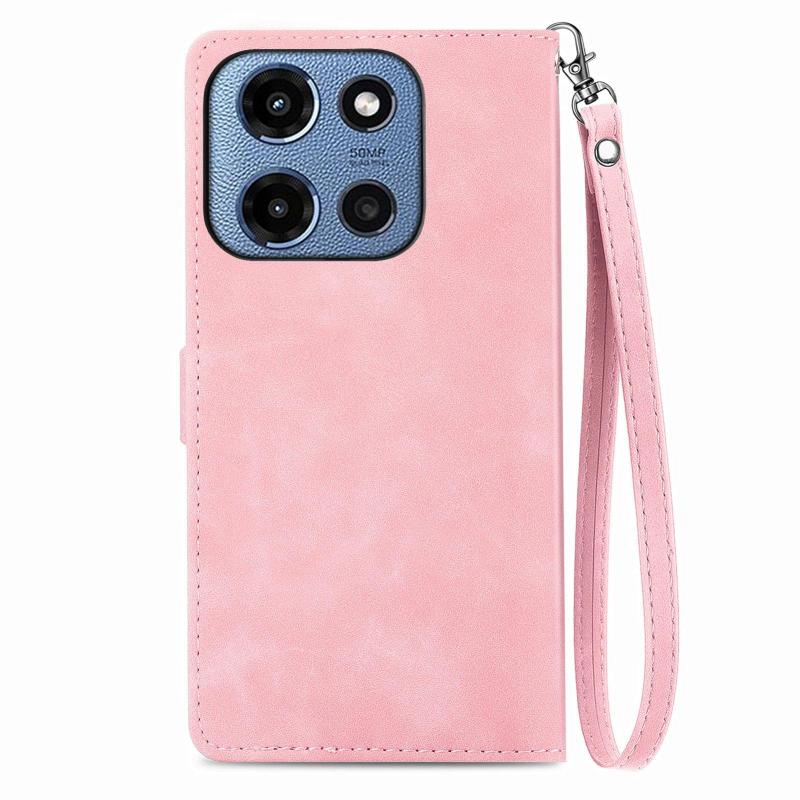 Θήκη κινητού τηλεφώνου δερμάτινη με φερμουάρ και ανάγλυφο λουλούδι για Motorola Moto G 2025 (ρόζ)