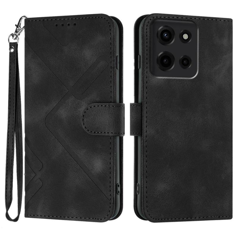 For Motorola Moto G 2025 Line Pattern Skin Feel Leather Phone Case(Black)
