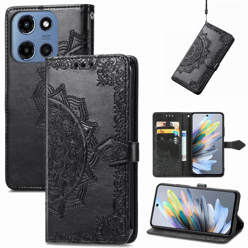For Motorola Moto G 2025 Mandala Flower Embossed Leather Phone Case(Black)