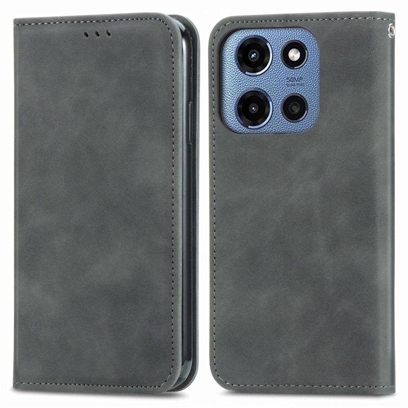 For Motorola Moto G 2025 Retro Skin Feel Magnetic Flip Leather Phone Case(Gray)