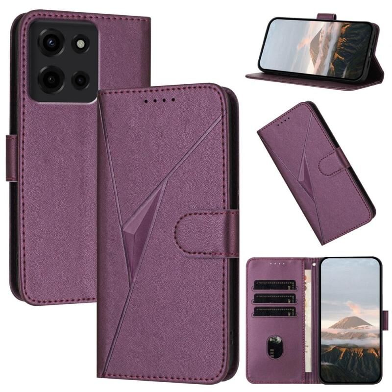 Θήκη τηλεφώνου από δέρμα με αγκράφα τριγωνικού μοτίβου για Motorola Moto G 2025 (Σκούρο Μωβ)