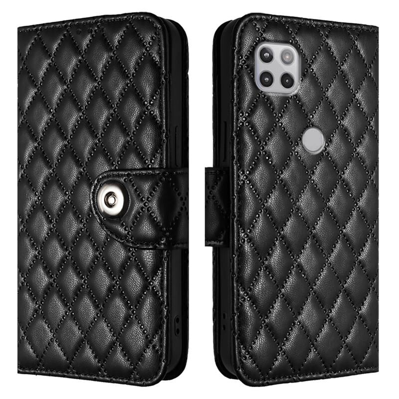 Για Motorola Moto G 5G 2020 Rhombic Texture Flip δερμάτινη θήκη τηλεφώνου με κορδόνι (μαύρο)