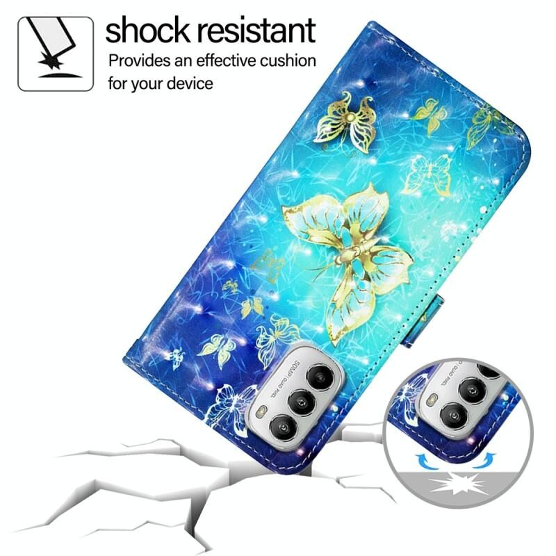 Θήκη τηλεφώνου δερμάτινη με οριζόντιο άνοιγμα και τρισδιάστατη ζωγραφική για Motorola Moto G 5G 2022 (Χρυσή Πεταλούδα)