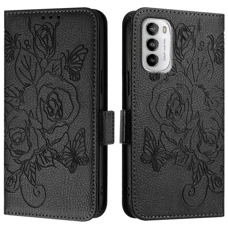 Για Motorola Moto G 5G 2022 Ανάγλυφο Rose RFID Anti-theft Δερμάτινη θήκη τηλεφώνου (Μαύρο)