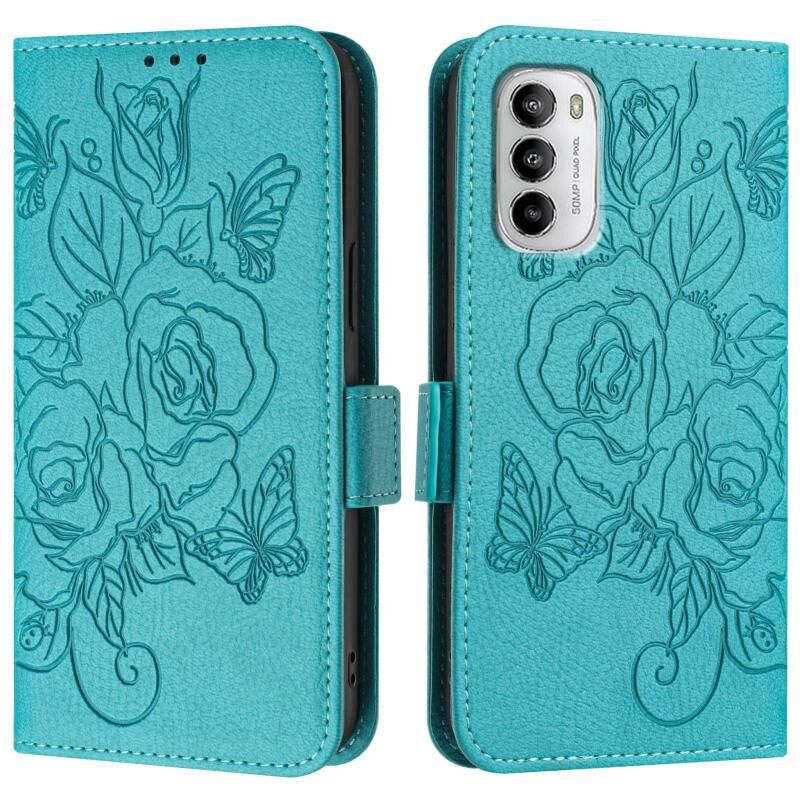 Για Motorola Moto G 5G 2022 Ανάγλυφο Rose RFID Anti-theft Δερμάτινη θήκη τηλεφώνου (γαλάζιο)