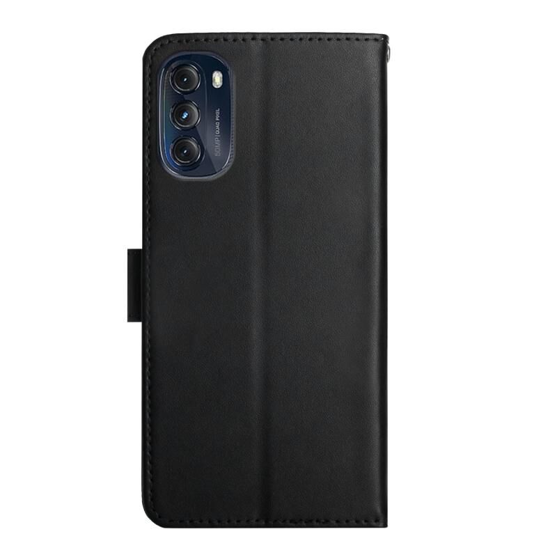 Θήκη τηλεφώνου οριζόντιας αναδίπλωσης από γνήσιο δέρμα για Motorola Moto G 5G 2022, ανθεκτική στα δακτυλικά αποτυπώματα (Μαύρο)