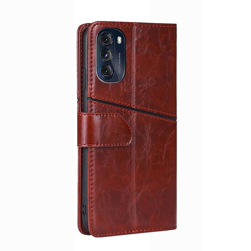 Για Motorola Moto G 5G 2022 Γεωμετρική ραφή οριζόντια Flip δερμάτινη θήκη τηλεφώνου (σκούρο καφέ)