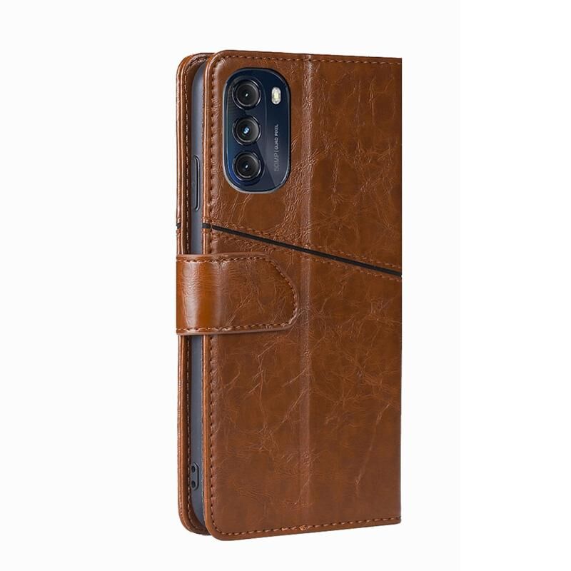 Για Motorola Moto G 5G 2022 Γεωμετρική ραφή οριζόντια Flip δερμάτινη θήκη τηλεφώνου (ανοιχτό καφέ)