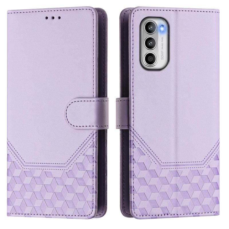 Για Motorola Moto G 5G 2022 Honeycomb ανάγλυφη RFID δερμάτινη θήκη τηλεφώνου (ανοιχτό μοβ)
