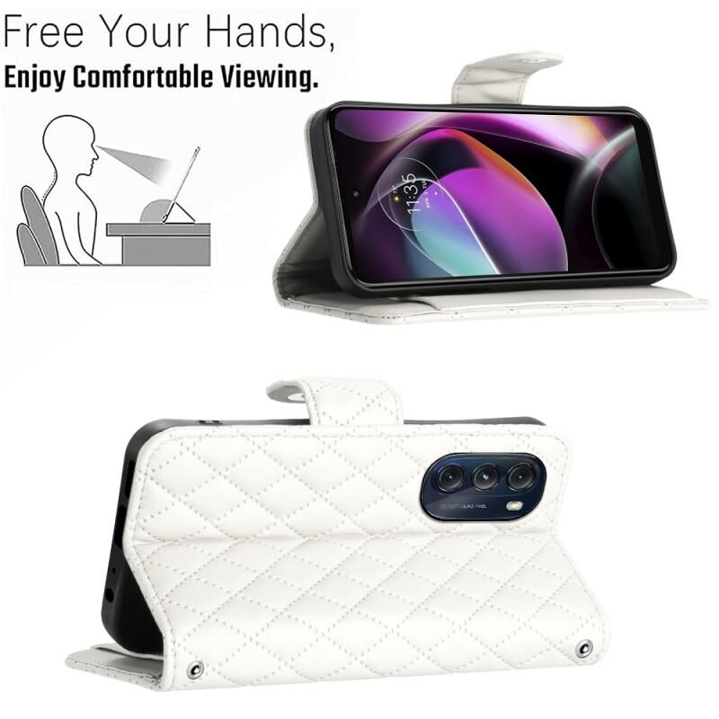 Για Motorola Moto G 5G 2022 Rhombic Texture Flip δερμάτινη θήκη τηλεφώνου με κορδόνι (λευκό)