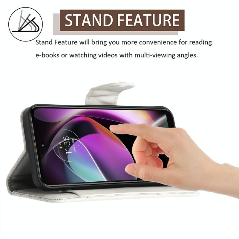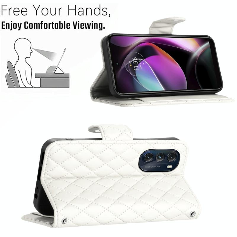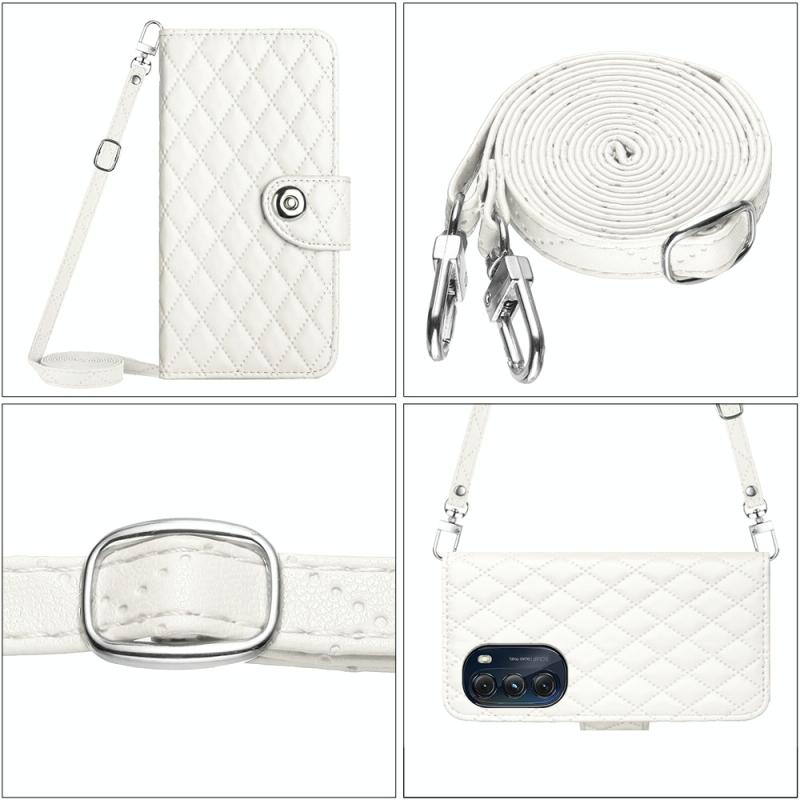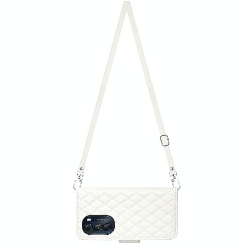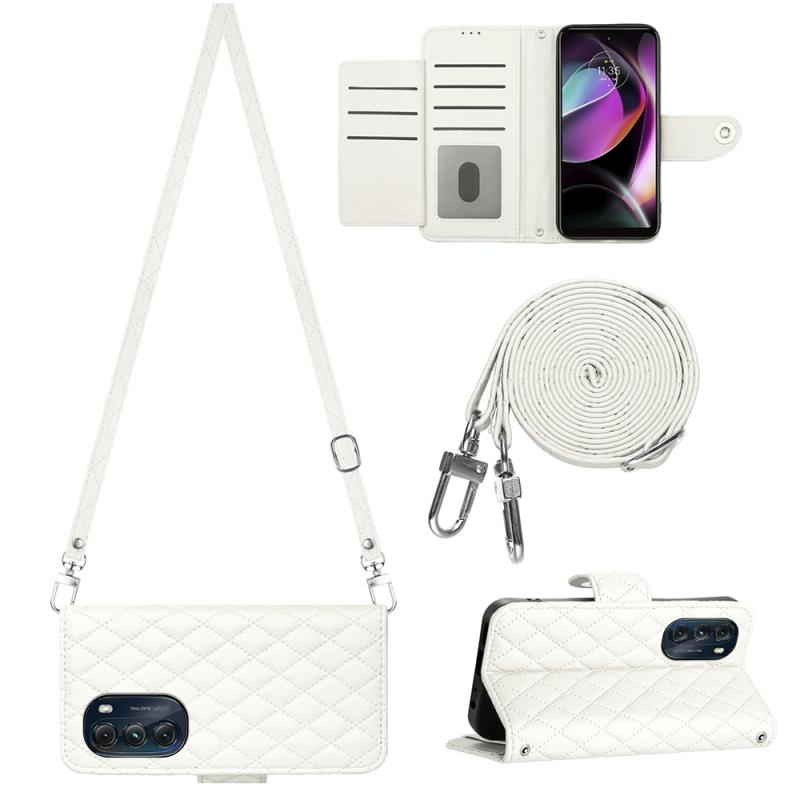 For Motorola Moto G 5G 2022 Rhombic Texture Flip Leather Phone Case with Long Lanyard(White)