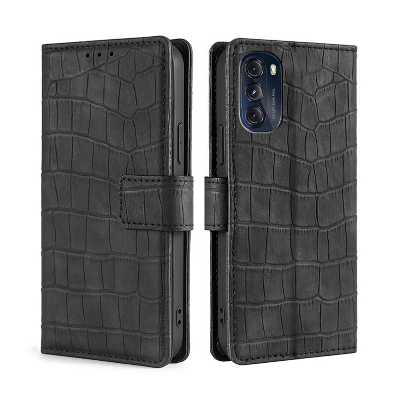 Θήκη τηλεφώνου δερμάτινη με μαγνητικό κούμπωμα και υφή κροκόδειλου για Motorola Moto G 5G 2022 (Μαύρο)