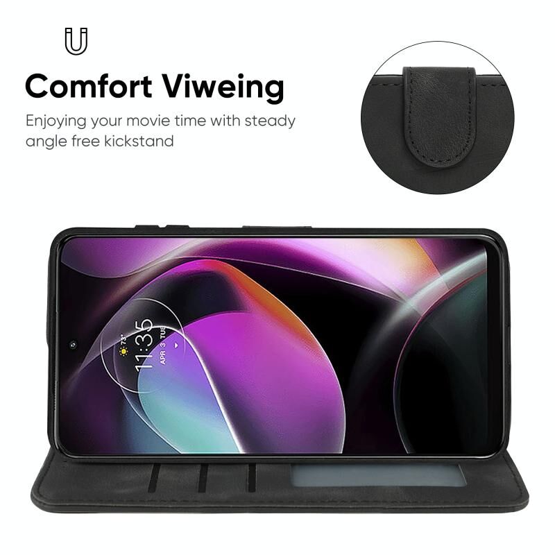 Για Motorola Moto G 5G 2022 Skin Feel γεωμετρικές γραμμές δερμάτινη θήκη τηλεφώνου (μαύρο)