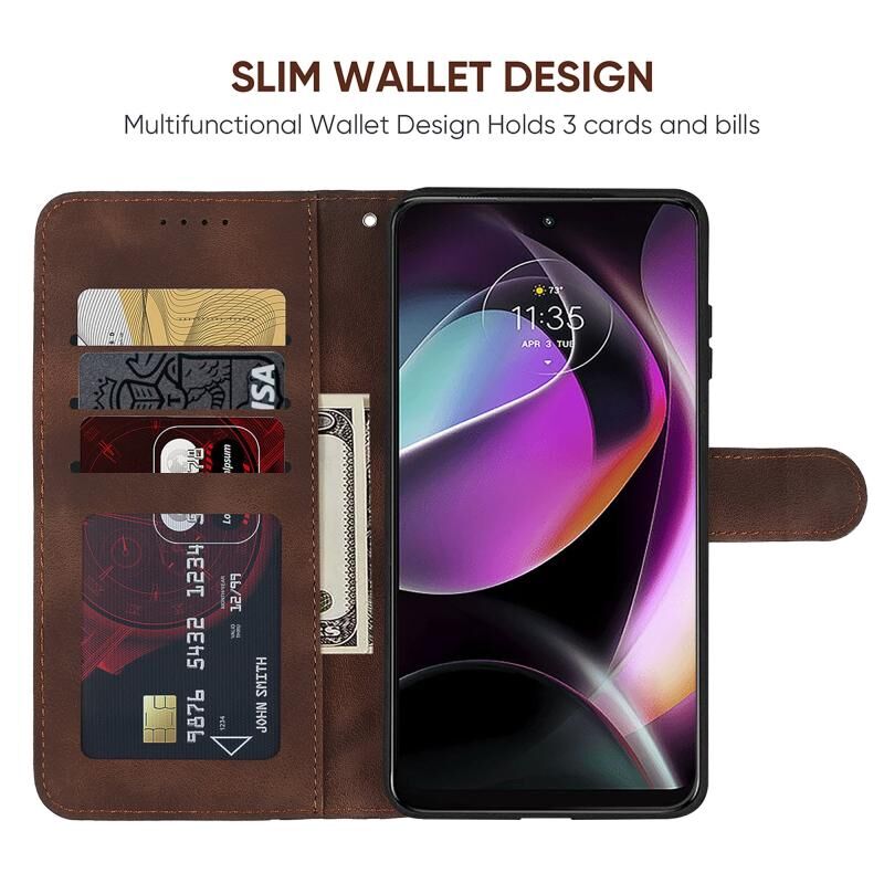 Για Motorola Moto G 5G 2022 Skin Feel γεωμετρικές γραμμές δερμάτινη θήκη τηλεφώνου (καφέ)