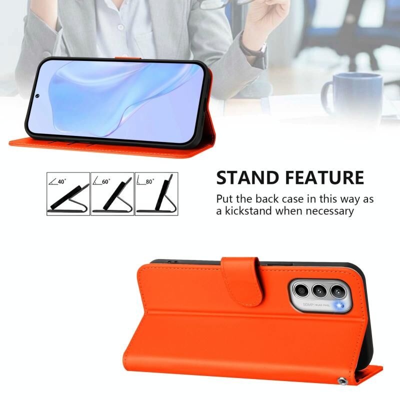 Για Motorola Moto G 5G 2022 Skin Feel Solid Color Leather Phone Case με κορδόνι (πορτοκαλί)