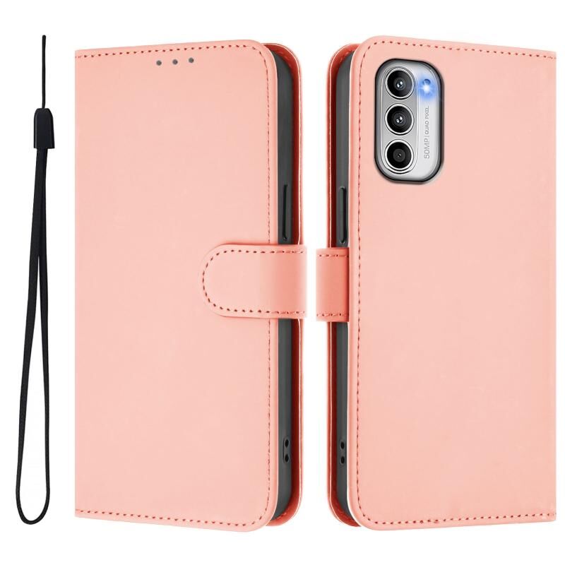 Για Motorola Moto G 5G 2022 Skin Feel Solid Color Leather Phone Case με κορδόνι (ροζ)