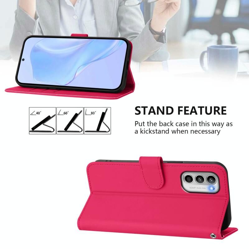 Για Motorola Moto G 5G 2022 Skin Feel Solid Color Leather Phone Case με κορδόνι (Rose Red)