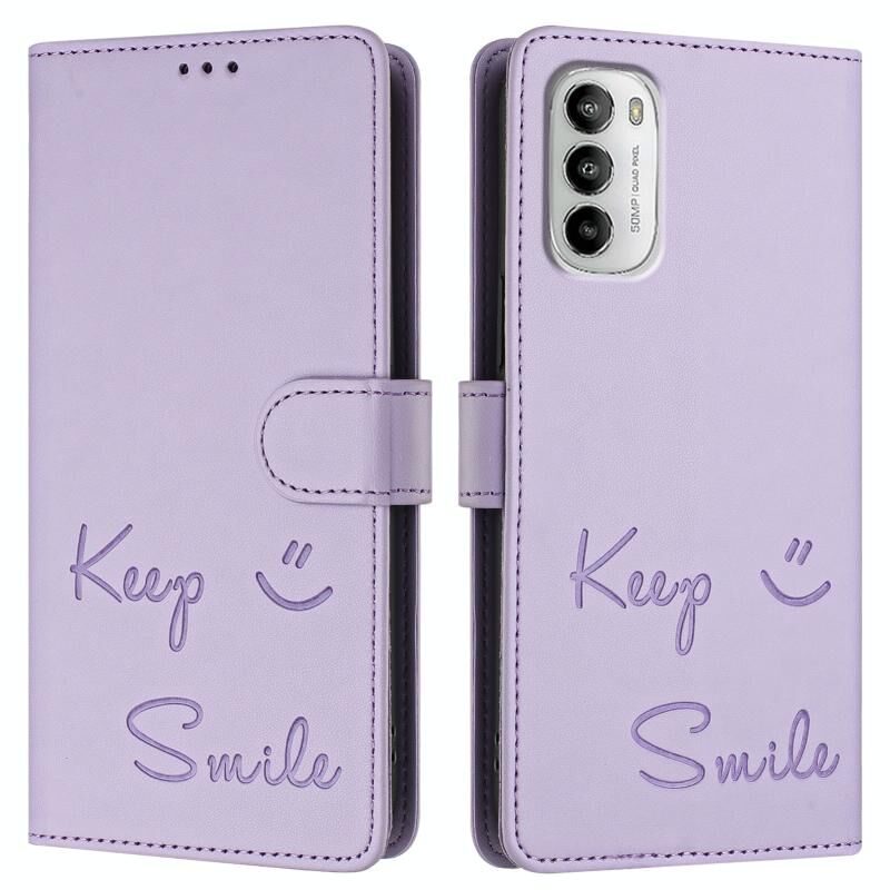 Θήκη τηλεφώνου από δέρμα με ανάγλυφο χαμόγελο και RFID για Motorola Moto G 5G 2022 (Μέντας Πράσινο)