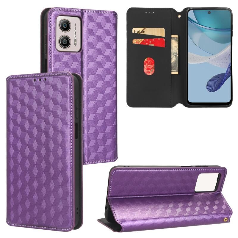 Θήκη τηλεφώνου από δέρμα με υφή Cubic Grid και πτυσσόμενο σχεδιασμό για Motorola Moto G 5G 2023 (Κόκκινο)