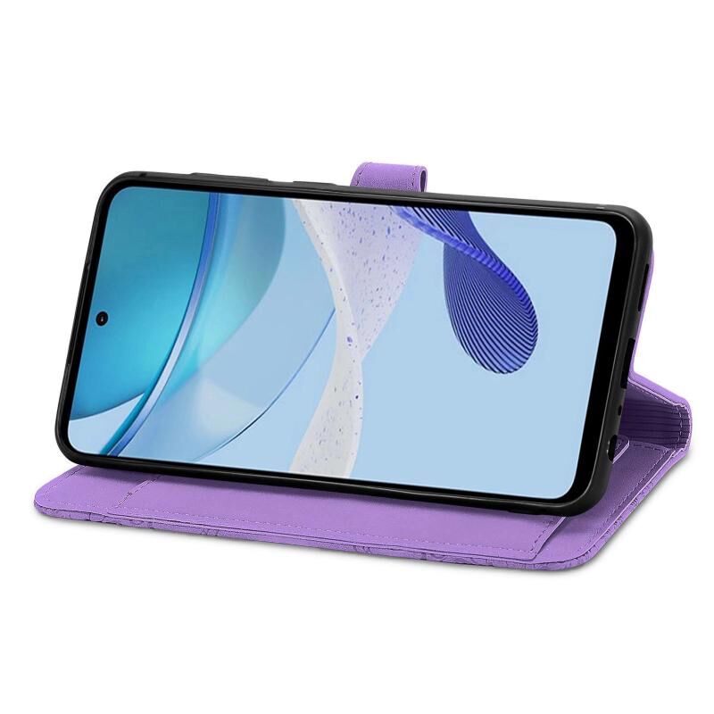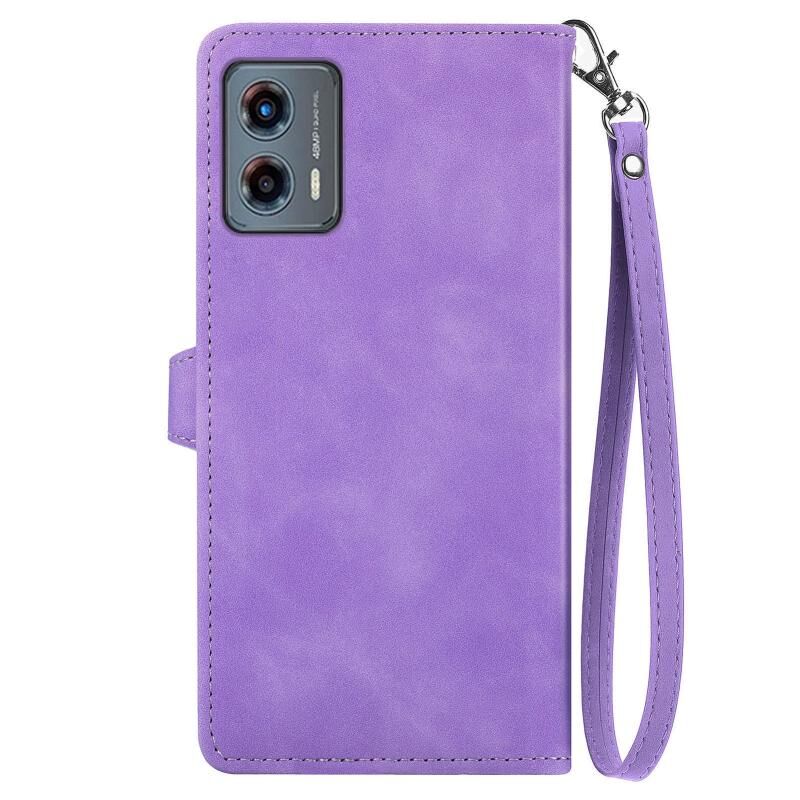 Για Motorola Moto G 5G 2023 Ανάγλυφο λουλούδι φερμουάρ δερμάτινη θήκη τηλεφώνου (μωβ)
