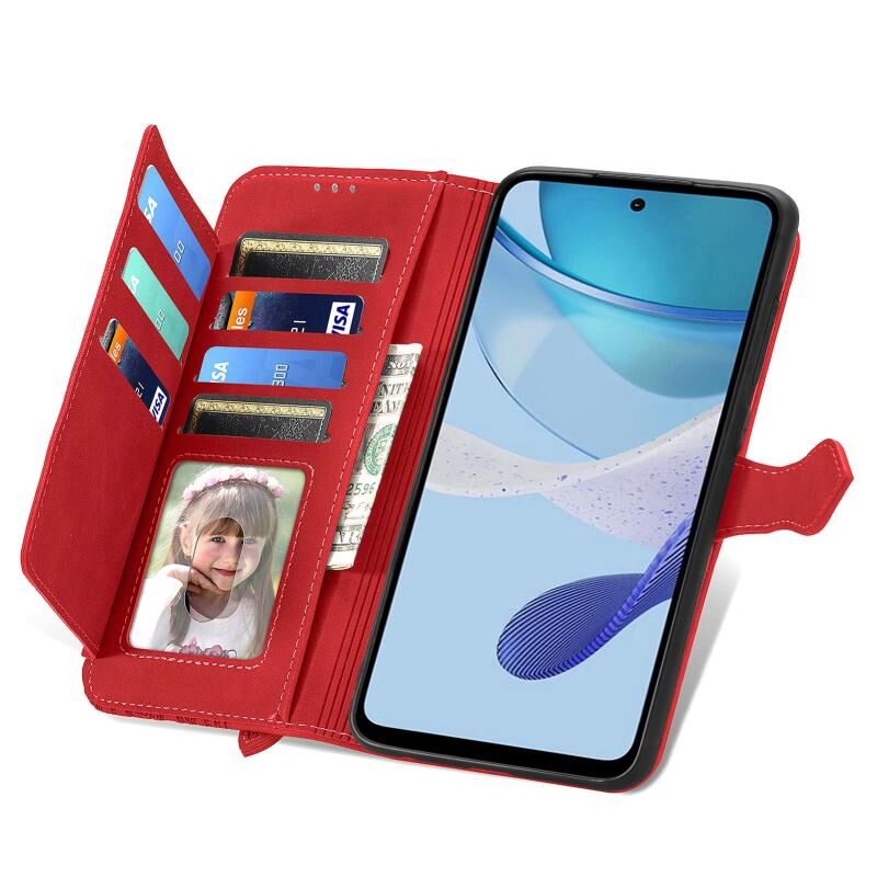 Για Motorola Moto G 5G 2023 Ανάγλυφο λουλούδι φερμουάρ δερμάτινη θήκη τηλεφώνου (κόκκινο)