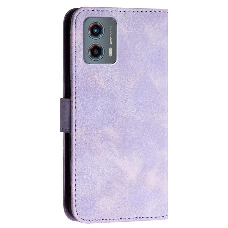 Θήκη κινητού τηλεφώνου δερμάτινη με ανάγλυφο σχέδιο πλέγματος και πεταλούδας για Motorola Moto G 5G 2023 με κορδόνι (ανοιχτό μωβ)