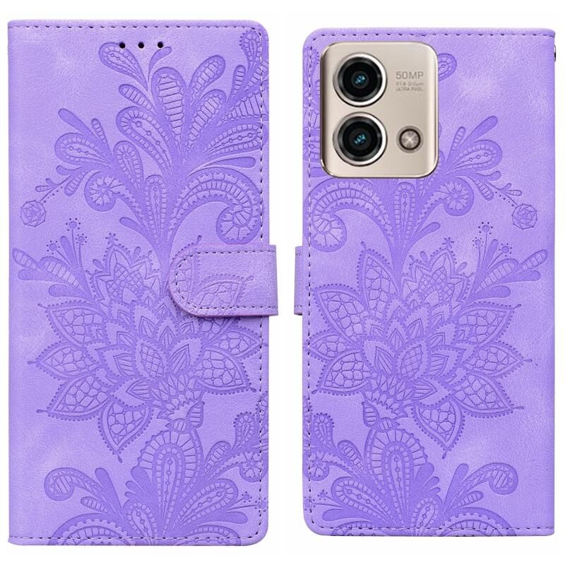 Θήκη κινητού τηλεφώνου με μαγνητικό κούμπωμα και λουρί καρπού από δερματίνη (PU) με δαντελένια λουλουδάτα ανάγλυφα για Motorola Moto G 5G 2023 (Πράσινο)