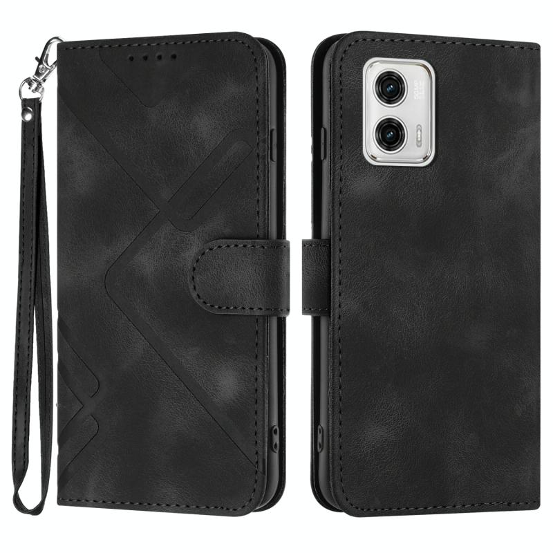 Θήκη τηλεφώνου από δέρμα με υφή και σχέδιο γραμμών για Motorola Moto G 5G 2023 (Μαύρο)